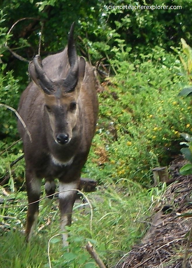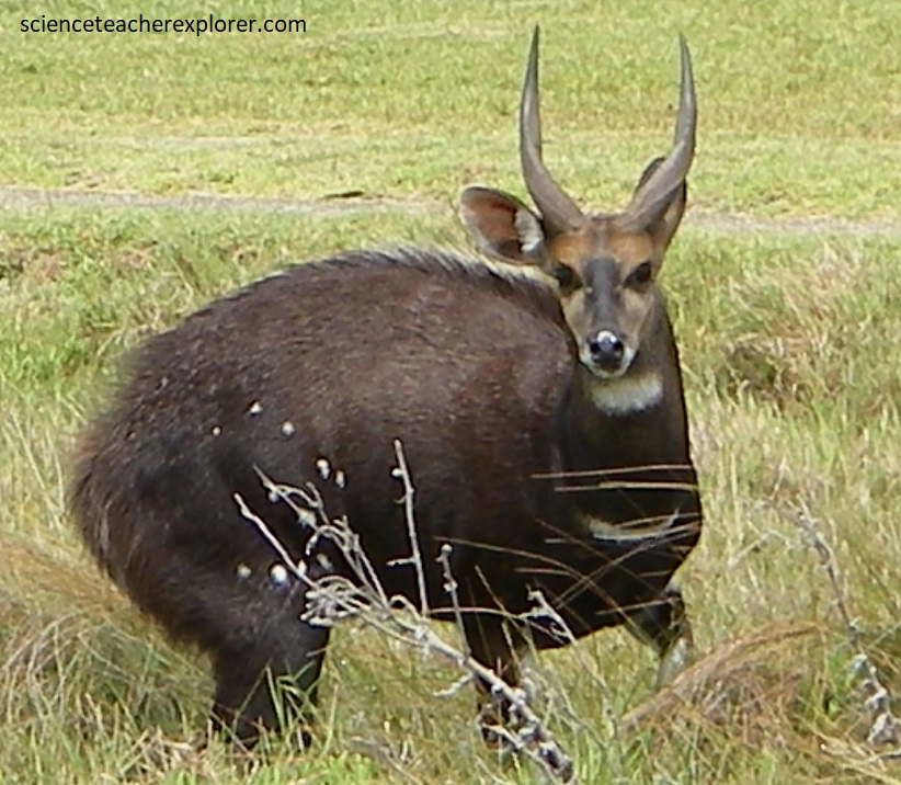 Pictured above, Bushbucks Tragelaphus scriptus were found on the Western Knysna Head within the “Featherbed Nature Reserve”. They were a medium-sized, reddish-brown animal with white spots on the body, white patches at the base of the neck and against the legs. They both seemed very solitary.