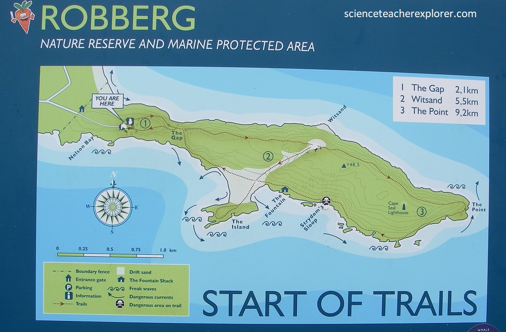 Pictured above, Robberg Peninsula narrows down to less than 200 m at a fracture zone called the “Gap”, which is more than 20 m above sea level, and where it could be breached in the distant future.
