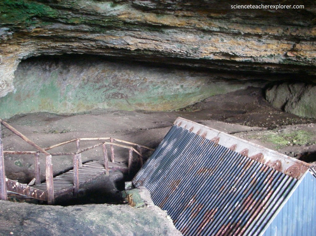 Pictured above and below, the Nelson Bay Cave is a large overhang formed by wave erosion at the unconformity between quartzite and breccia.