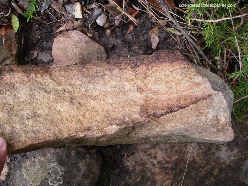 Pictured above, active regional faulting caused the basin to subside below sea level and strong wave action produced pebbly beach deposits that are now preserved as layers of well-rounded quartzite pebble-conglomerate.