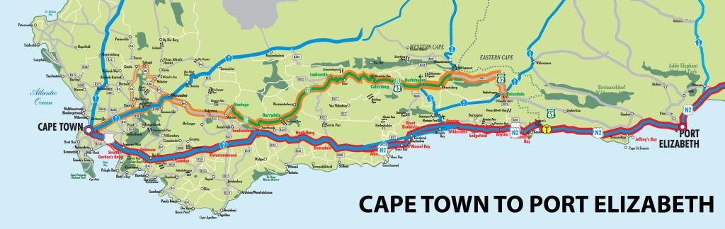 Halfway along South Africa’s southern coast, (between the cities of Cape Town and Port Elizabeth), the ocean coast and the mountain range narrows the coastal plain to a mere 5 km in places. The rapid 1,000 m rise from the ocean to the peaks, together with the prevailing winds off the warm currents of the Indian Ocean, have created a region on the southern cape of rare beauty. I trekked and explored this region with my traveling buddy, Mike Stevens, in February of 2024.
