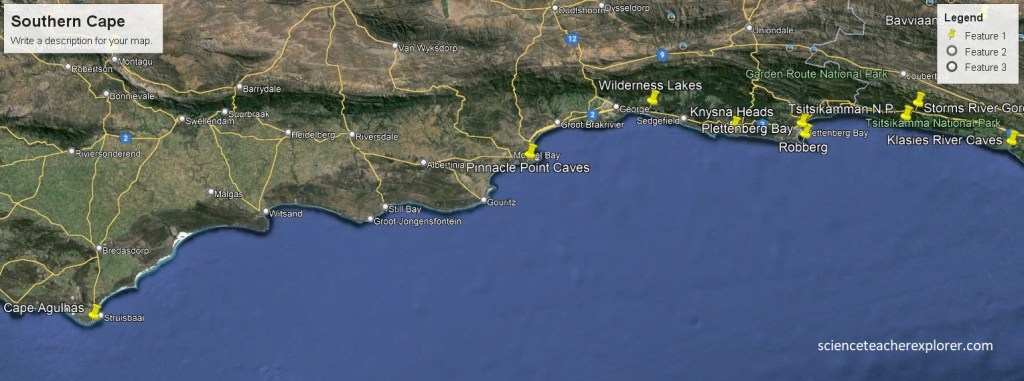 Pictured below, we started our exploration at the Klasies River Caves and worked our way to Cape Agulhas, (the southern tip of Africa). I called this region, the Southern-Cape of Africa. Others commonly defined this region as the Garden-Route due to its outstanding beauty.