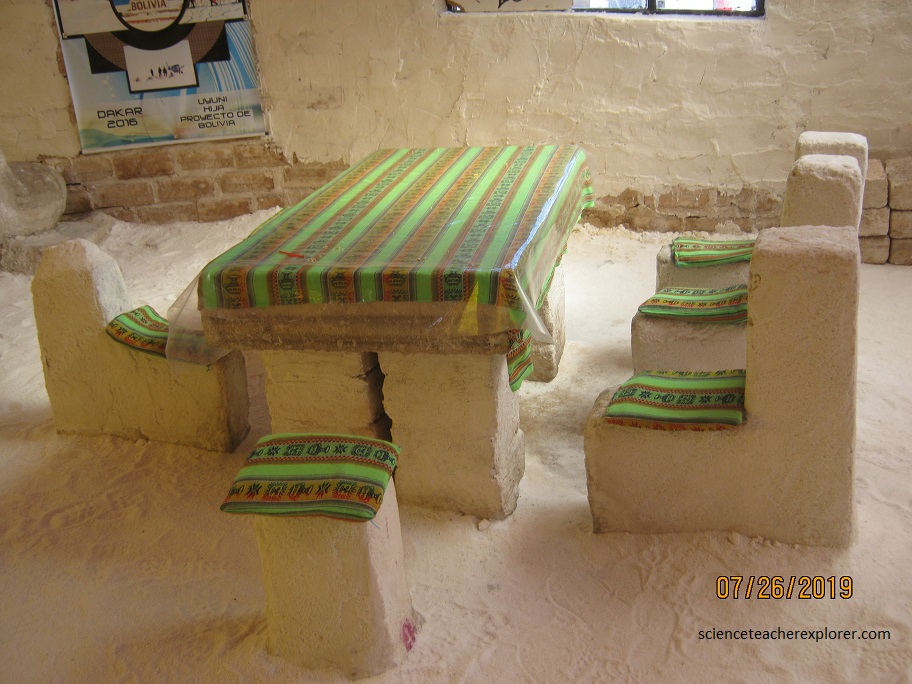 Created from salt bricks held together with salt mortar, the hotel (café) and everything inside it, including the chairs and tables, are made from salt, (pictured above). While the Hotel Playa Blanca has no electricity and little in the way of amenities (its water must be trucked in), it does offer even more important and certainly rarer qualities: utter silence, an all-encompassing austere beauty, and an astonishing view of the night sky.