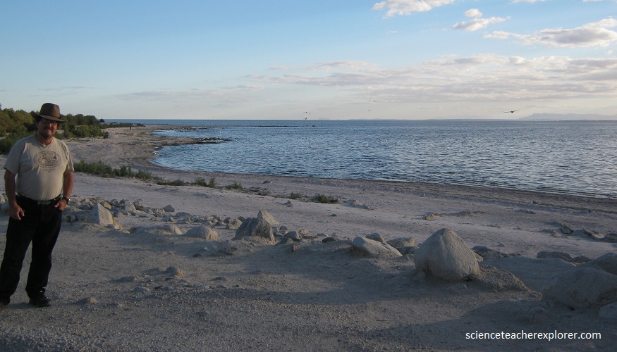 Below, I am standing on the shores of the Salton Sea. The Salton Sea is a shallow, saline, endorheic rift lake located directly on the San Andreas Fault.