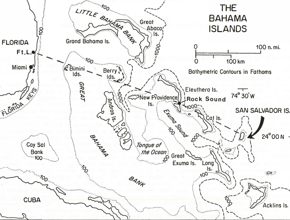 Although isolated and small in size, San Salvador Island has an all carbonates setting on a small, tectonically stable platform, surrounded by deep oceanic waters, with an historical footnote as the widely accepted first landing site of Christopher Columbus in the New World in 1492.