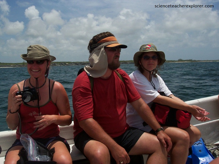Pictured above, my scientific team is taking a day to explore the different islands and reefs north of San Salvador Island, (in Graham’s Harbour) with a small boat. In Graham’s Harbour, with its extensive seagrass and eelgrass beds as well as coral reef, serve as a very important breeding ground for conch and other marine animals.