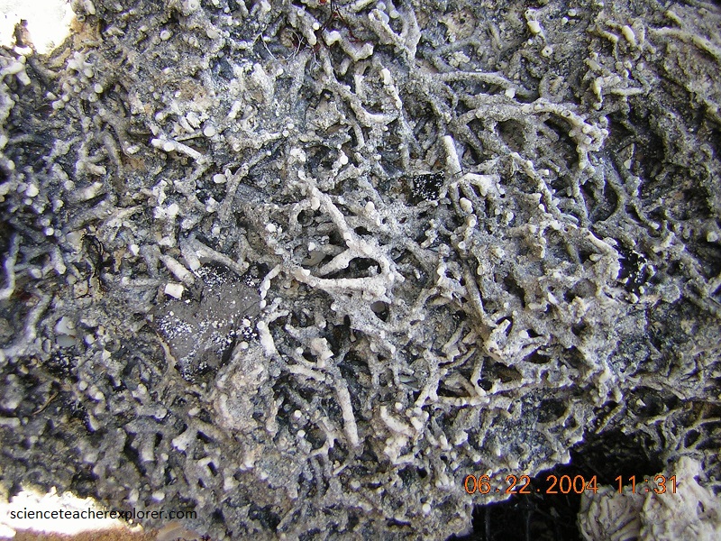 Pictured above, Acropora cervicornis rubblestone in the “Cockburn Town Fossil Reef” that is about 125,000 years old. The small branching structures are fossil, broken staghorn coral skeletons (Acropora cervicornis).