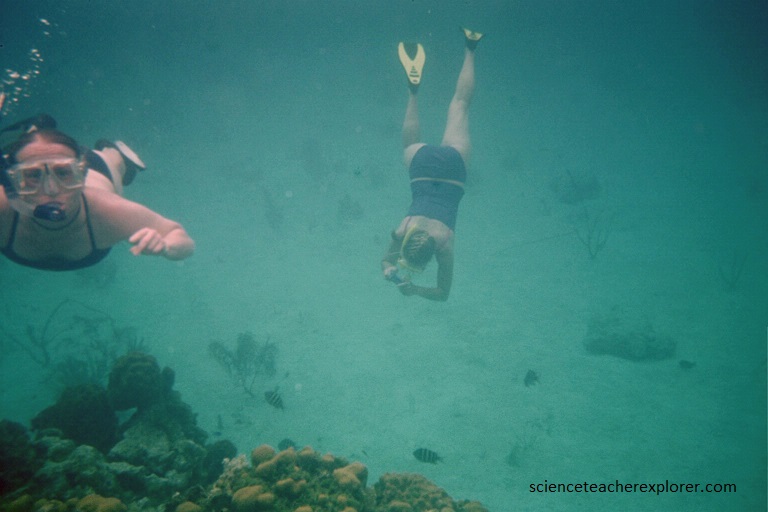 Pictured above, with a blown knee and extreme swelling, the best thing I could do, was snorkel in the cool waters of the Bahama ocean. Snorkeling kept the weight off my hurt knee and kept it relatively cool. There was no ice, on this remote island of the Bahamas. Once I made it home, in Utah, I had to have my knee rebuilt through an operation.