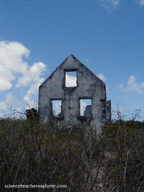 Pictured below, “Watling’s Castle” consists of the ruins of the late 1700s to early 1800s. The remnant building is called the Sandy Point plantation manor house. It was constructed during the “Loyalist or Plantation Era”, during which people loyal to Britain left American after its independence in the 1770s and headed to the Bahamas. The land was used for moderately intense agricultural purposes.