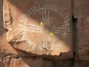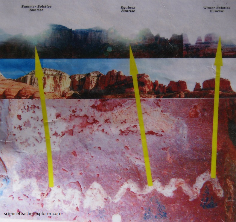 Pictured below, is another calendar pictograph at the Palatki Site that is shown to use shadows for a calendar.