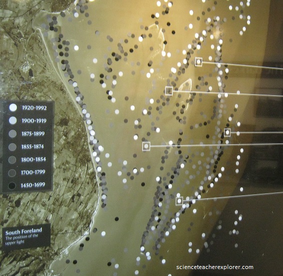 The next morning, I found the mirrors on top of the “White Cliffs of Dover”. I’m standing just above the cliffs near South Downs of Sussex, looking across the English Channel towards France. The wind and rain was very bad. I took refuge in a nearby light-house. There, they had a small museum honoring Marconi’s attempt to shoot Radio waves across the English Channel for the first time and the multiple ship-wrecks in the English channel nearby, (pictured below).