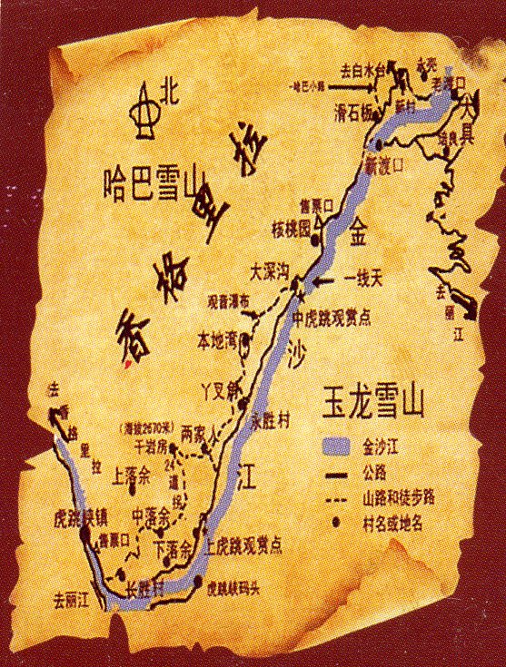 The Golden Sands River, which carved the chasm between the two mountains over five million years, runs as white-water rapids through most of the gorge, dropping steeply in three sections, the third of which is among the roughest set of rapids in the world. But in spite of all the turbulence, it is part of a tranquil and beautiful region of the eastern Himalayas. It was from the nearby Lijiang that Dr. Rock wrote articles that are said to have inspired James Hilton to create “Shangr-La” in his novel “Lost Horizon”.