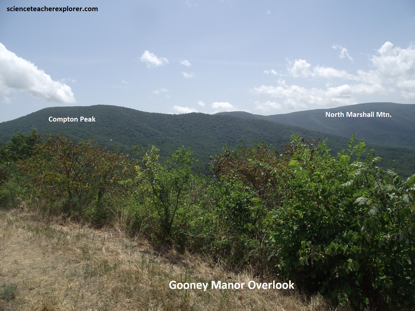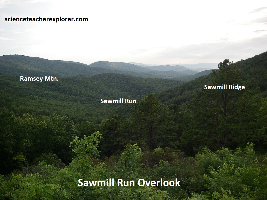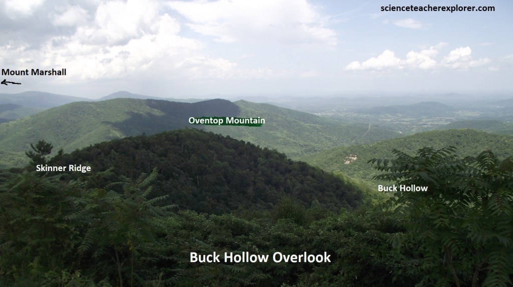 Pictured above, Buck Hollow Overlook gives us a view to the northeast over Pass and Oventop mountains at Hogback and Mount Marshall in the distance.