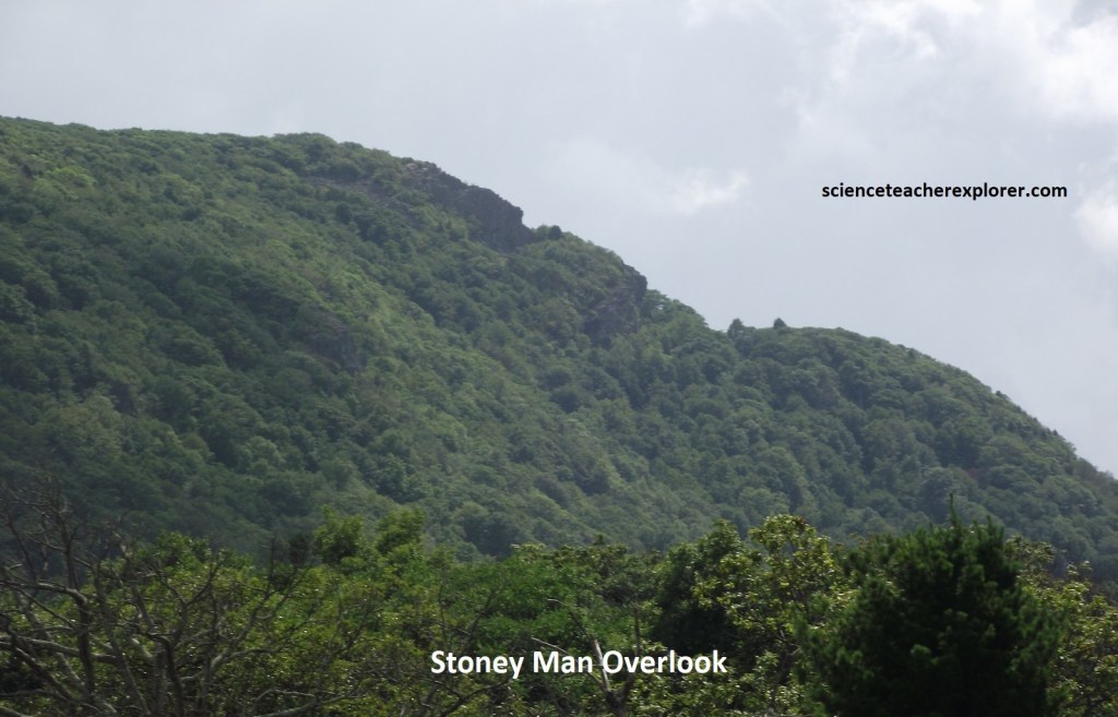 Pictured above, Stony Man, the old man in the mountain, is a Shenandoah National Park icon. It only takes a little imagination to see the profile of a man’s face in the mountain from the above overlook. Stony Man’s facade is Catoctin greenstone, (a metamorphosed ancient volcanic rock).