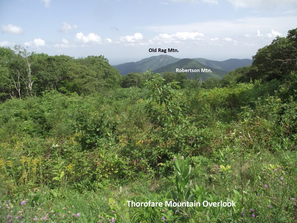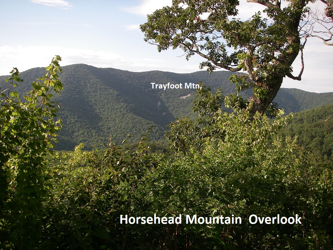 As the Skyline winds around for the next 5km, we made a brief stop at the Trayfoot Mountain Overlook, (pictured above). This gave us a broad view south along the Blue Ridge crest. To the southeast is the long, massive ridge of Pasture Fence Mountain, (pictured above). Trayfoot Mountain was of us and not pictured above.