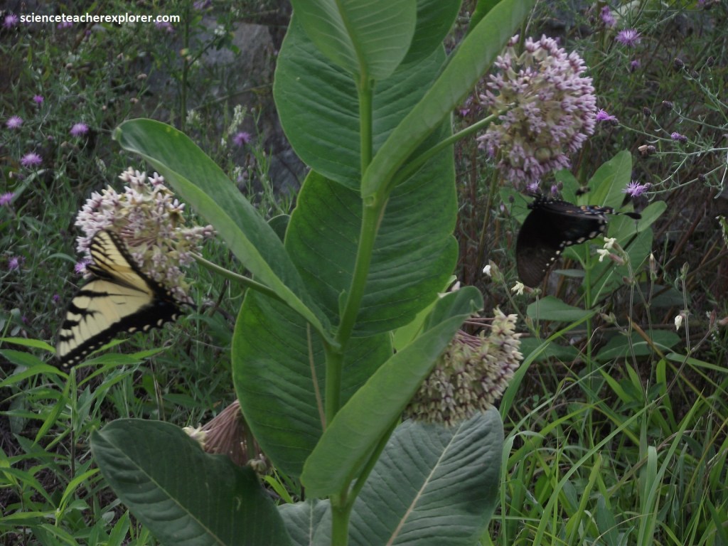 Milkweed’s abundance in Shenandoah is key to the survival of the stunning Monarch, Viceroy & Eastern Tiger butterflies. Milkweed is these butterflies host plant, providing shelter for its eggs, food for its caterpillar, and protection for the chrysalis. Here at the Thorofare Mountain Overlook, I found these two butterflies on one Milkweed, the Papilio troilus (Eastern Tiger) on the left and the Limenitis archippus (Viceroy) on the right.