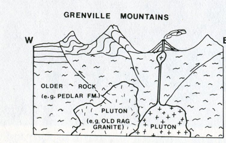 Pictured above, Browntown Valley lies to the southwest. The core of the Blue Ridge Anticlinorium consists of very old granitic rocks. The Middle Pre-Cambrian Pedlar Formation originated either as part of the ancient north American continent, (Laurentia), which occurs as the Canadian Shield, or as sediments that were deposited along the margin of Laurentia. The intense metamorphism which altered these rocks occurred during the Grenville Orogeny, (imaged below). Note that the contact between the Catoctin and underlying Pedlar Formations lies just below the parking area at the Gooney Run Overlook.