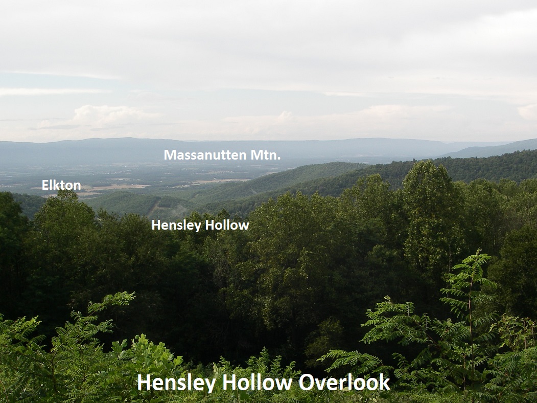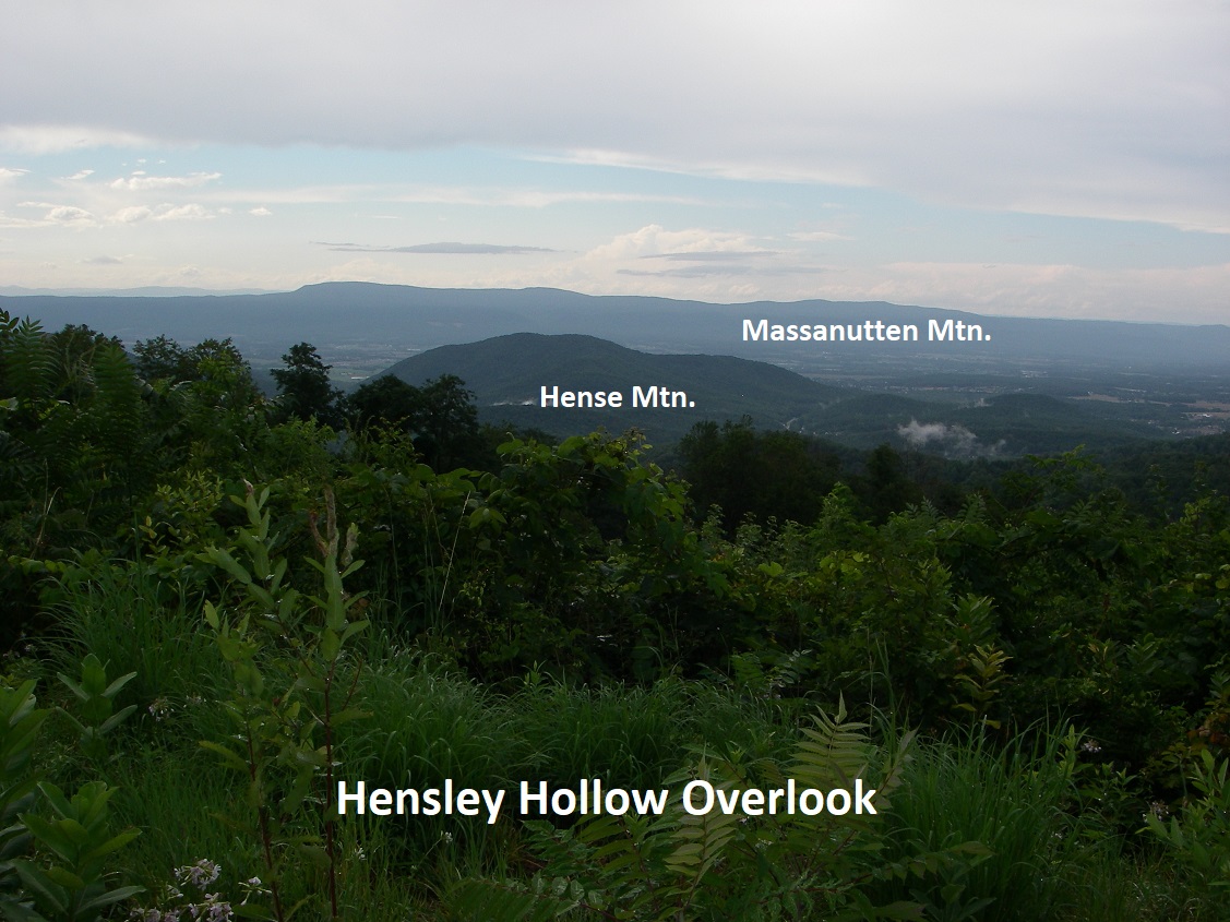 5km down the road, we stopped at the Hensley Hollow Overlook. This gave us a northwestern view over Hensley Hollow with Elkton to the left and Massanutten Mountain in the distance. Immediately south of Elkton is Hanse Mountain, (northern most of a lengthy range of mountains composed of the Cambrian Chilhowee rocks.