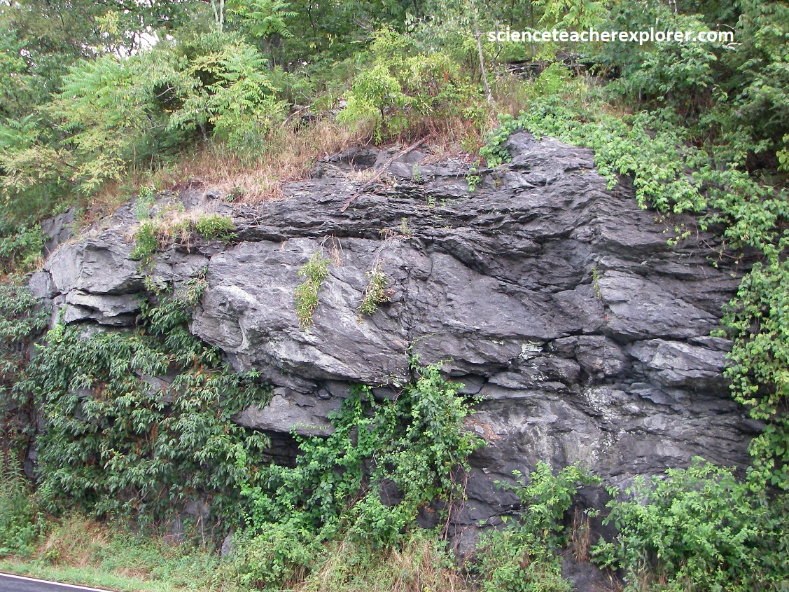 Pictured above, is a Catoctin greenstone roadcut. Two minerals, epidote and chlorite, both formed during metamorphism of the basaltic lava flows making up the 560 million year old Catoctin Formation, giving the greenstone it’s distinctive color and name.