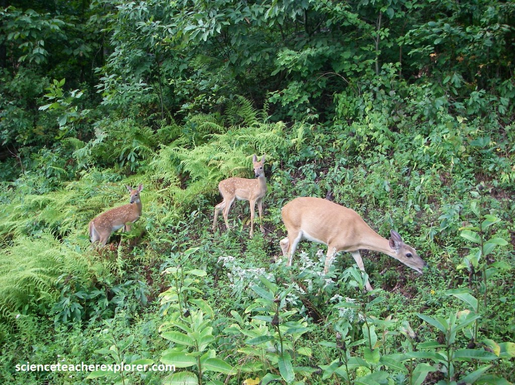 Pictured above, the return of the whitetail deer to Shenandoah began in 1934, when 13 animals were imported and released along Big Run. The regenerating forest provided excellent deer habitat and over 6,000 deer now roam the Park. In addition to the open areas at Big Meadows and Loft Mountain, artificially maintained grazing habitat is provided by the mowed areas along Skyline Drive, (seen above). {Note that there are over 800 Black Bears also in the Park}. However, we didn’t see any.