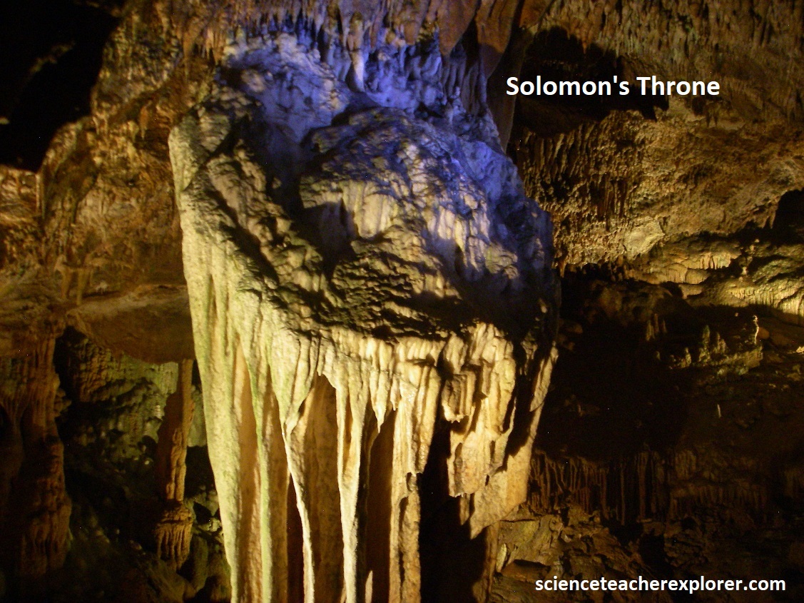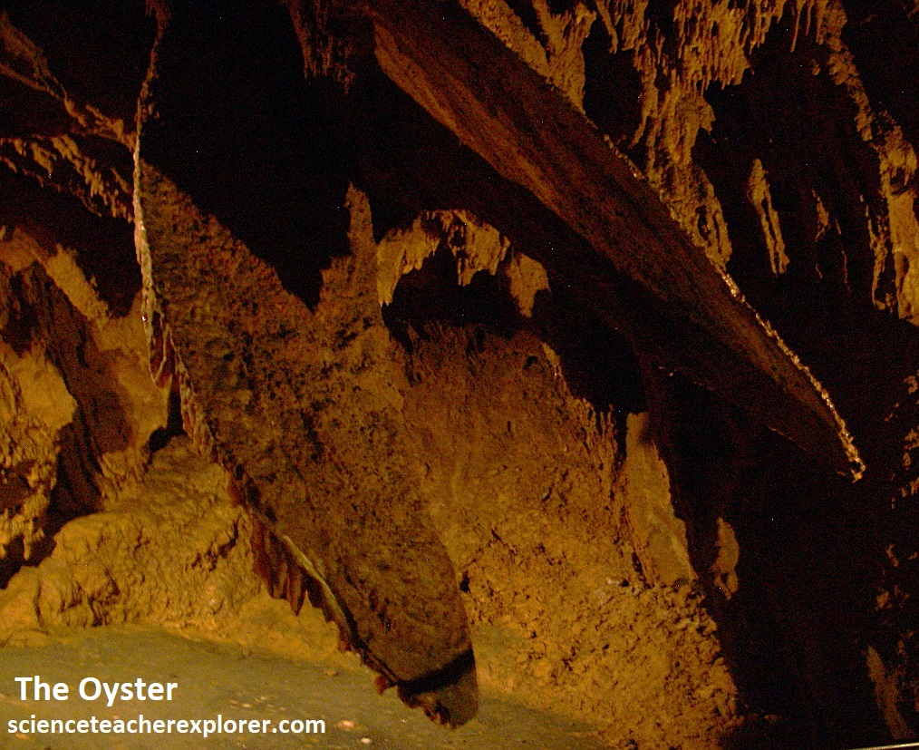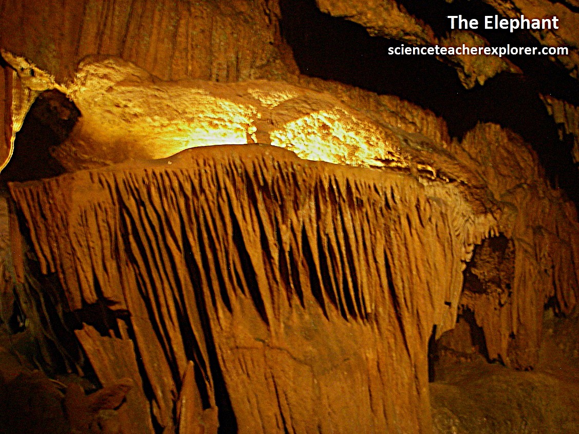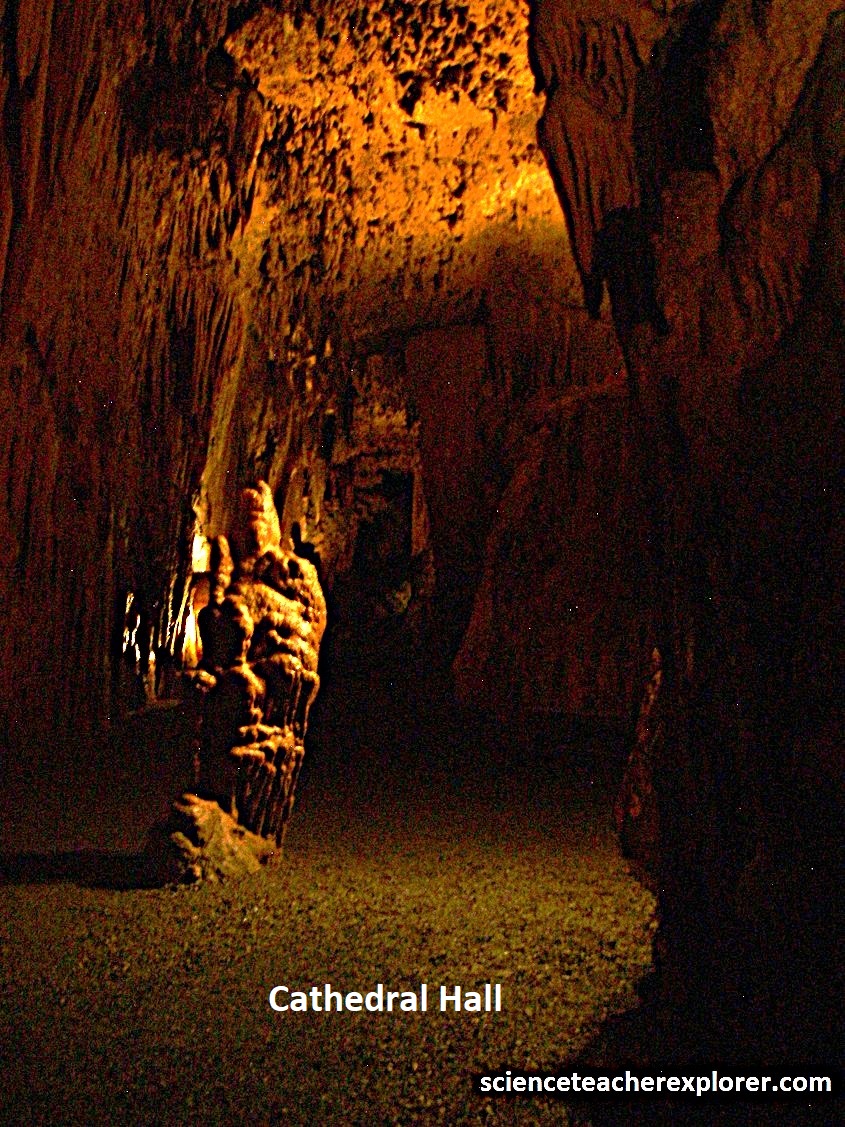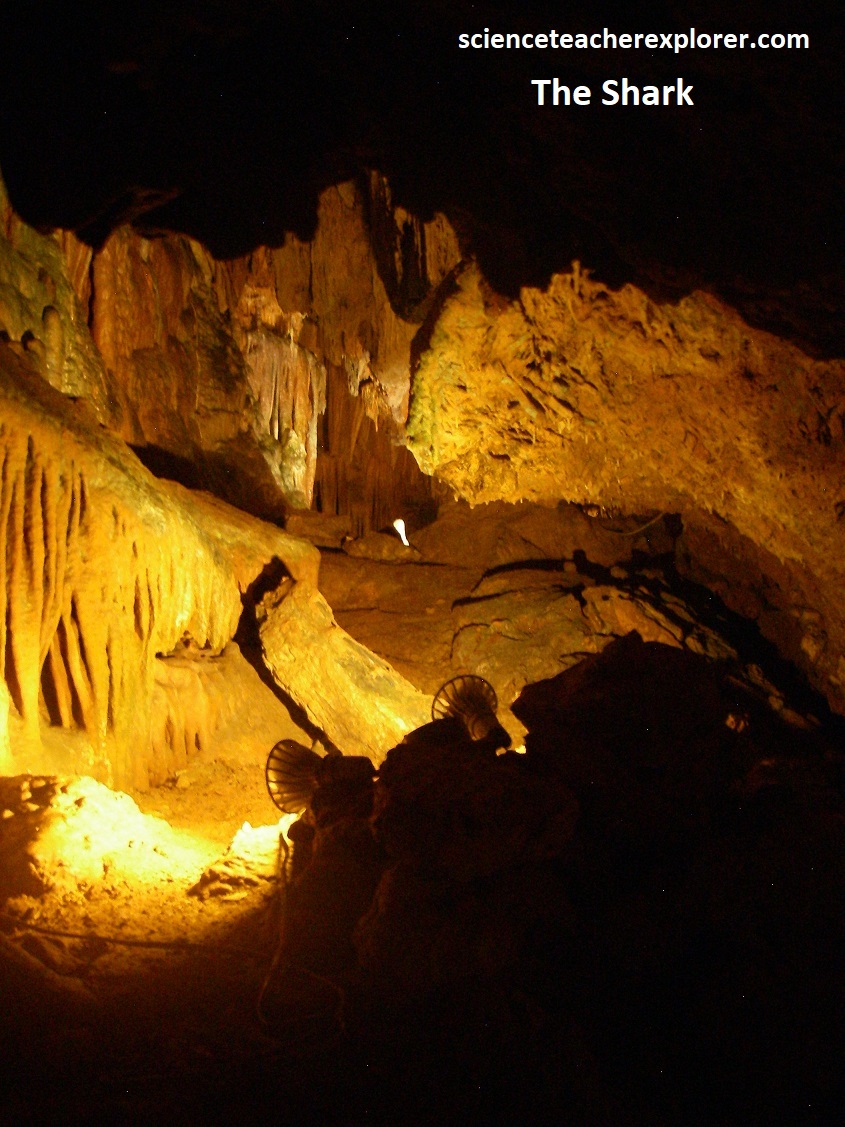 Pictured above and below, another important mineral in these caverns is calcite, (the white-colored deposits), which are the main component of speleothems.