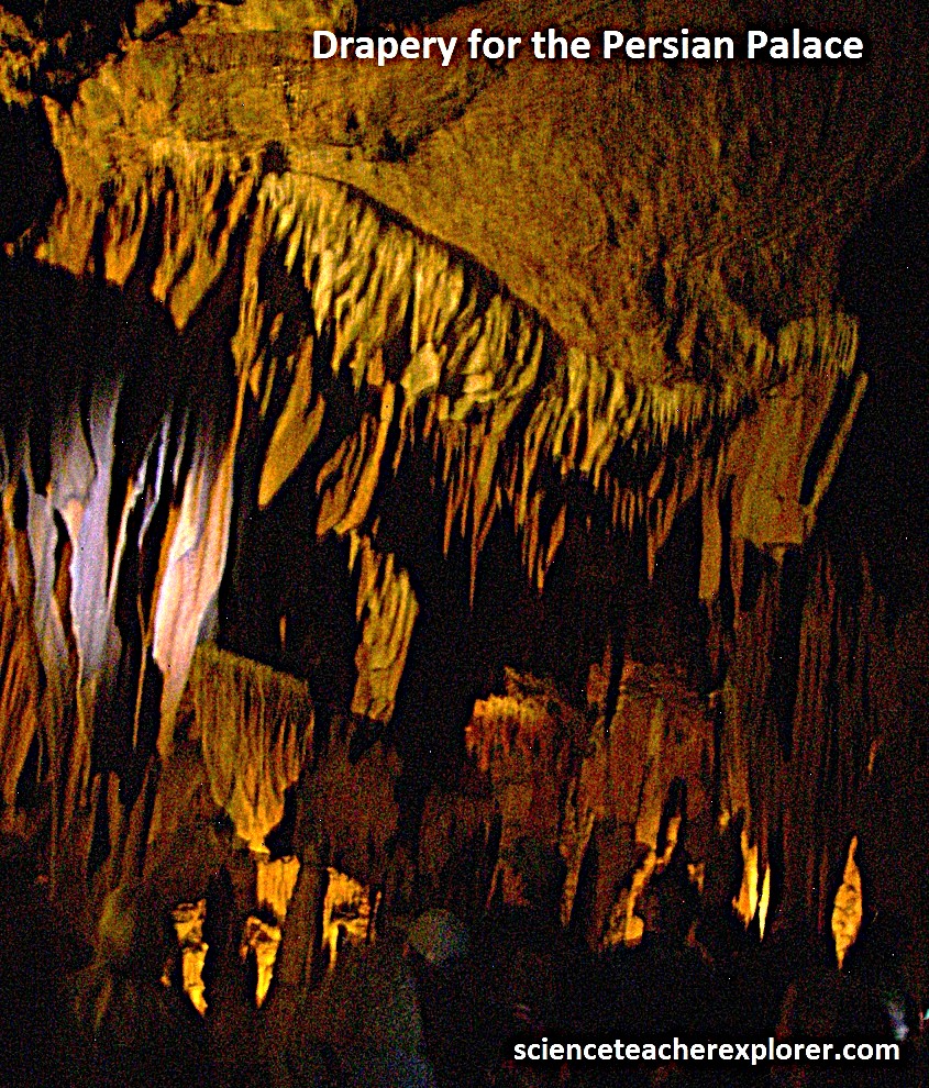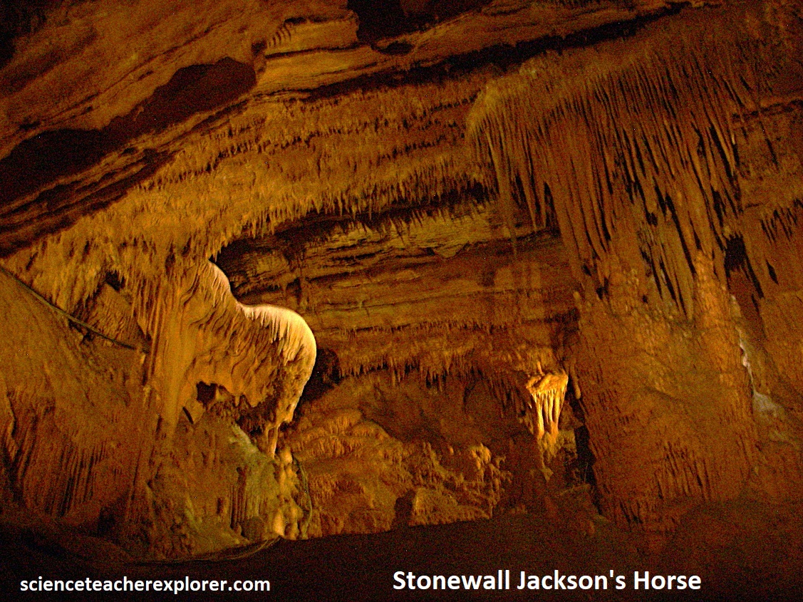 Pictured above on the left, the most stately room, “Cathedral Hall”, is 85m long and over 21m high. It is one of the largest rooms of any cavern in the eastern United States. As seen in my photos, other sights include “Bridal Veil”, “Stonewall Jackson’s Horse”, the “Tapestry Room”, and “Dante’s Inferno”.