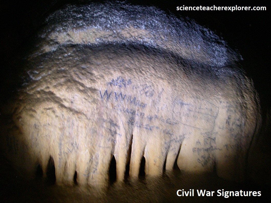 During the Civil War, the cave was visited by both Confederate and Union soldiers. During their visits, over 230 soldiers signed their names on the cave’s walls. One noted signature is that of W.W. Miles, signed on Sept. 26th, 1864. Once, Confederate General Stonewall Jackson was apparently camped near the entrance way and allowed his soldiers to visit the caverns, (pictured above).