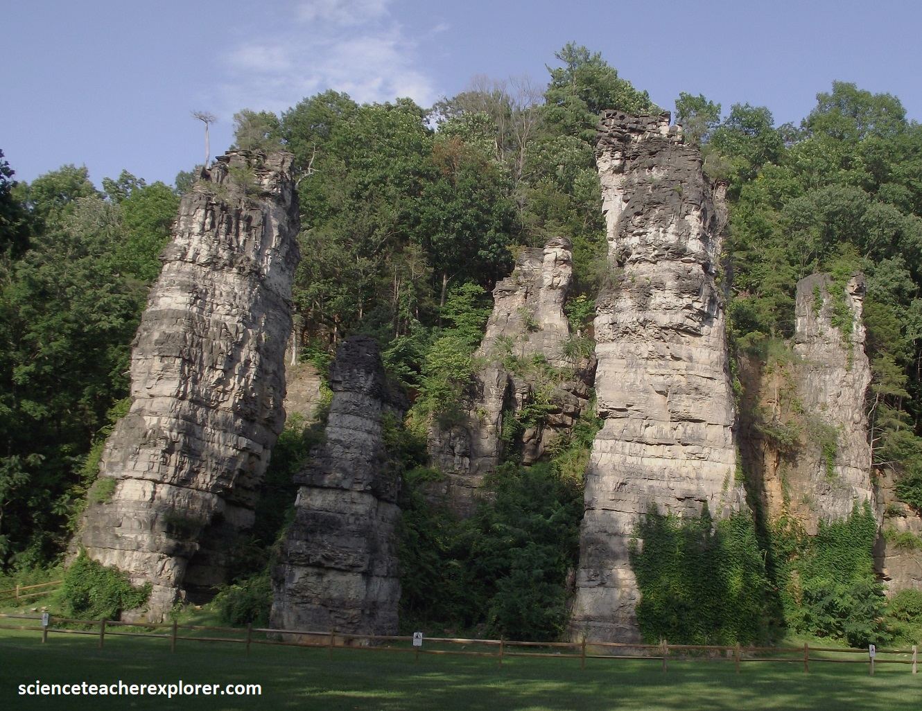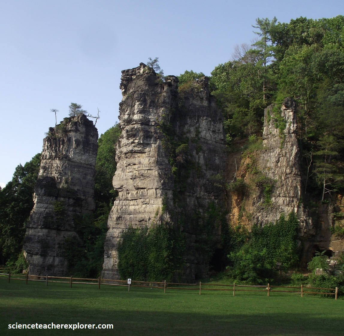 Imaged above, the Natural Chimneys are now erosion remnants of a former fissure cave system, a geologic curiosity unique in the eastern United States. However, processes of erosion continue their relentless work. In some future time, these mighty stone pillars will have been worn completely away.