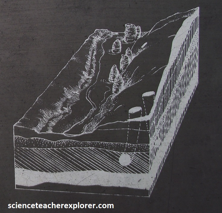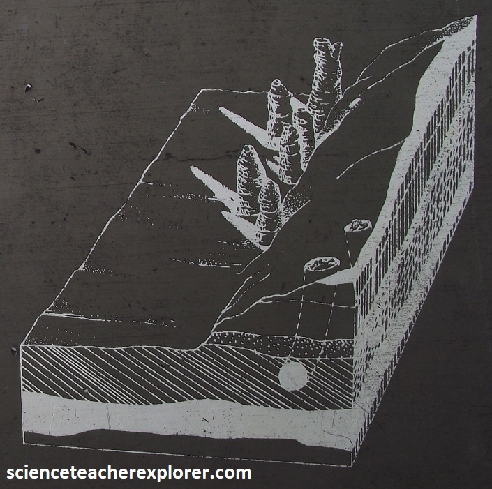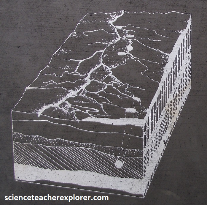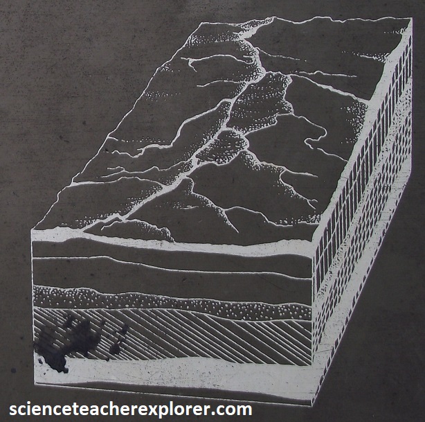 Image above, the earth, tormented within, began a period of restlessness. Upheaval and movement resulted in the formation of the ancestral Appalachian Mountains. Rock layers, formed on the ancient sea floor, were lifted up and folded. The intense pressures from this upheaval left their mark, fracturing and splitting the rock, forming cracks and fissures.