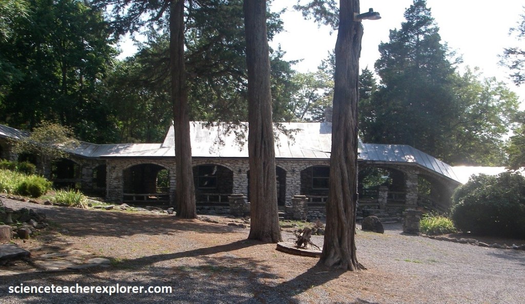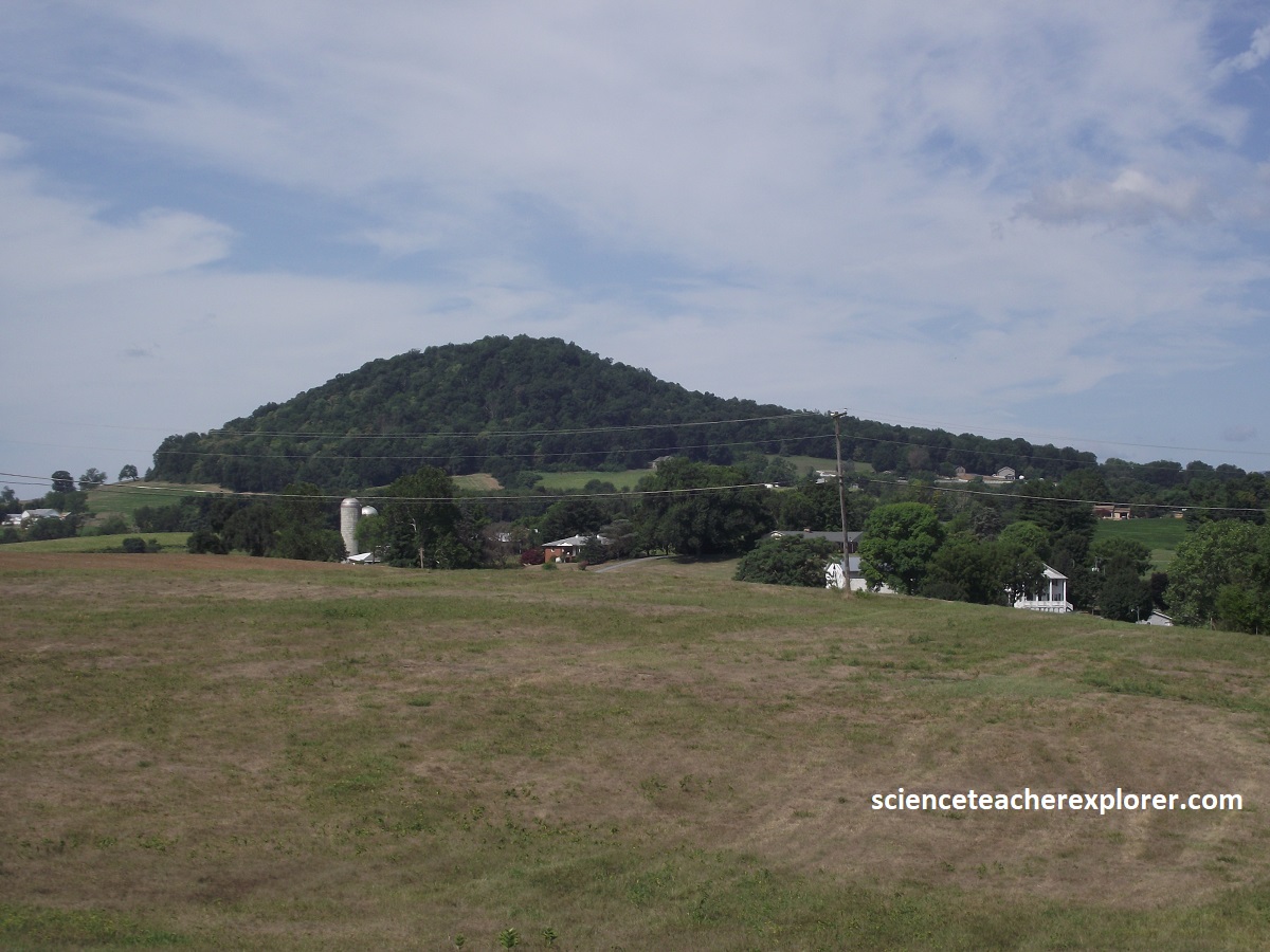 I then drove north on the backroads, until I reached US33, where I turned east towards Harrisonburg. Just about 20 km west of Harrisonburg, on US33, I viewed a fascinating site. On the southside of road, rose a tree-covered cone called the Mole Hill. The Mole Hill is crowned by exposures of basalt from volcanic activity that has been dated to be 47 million years old. Rising about 134m above the landscape, the basalt consists of a fine-grained texture that has pepper-corn-sized crystals of olivine, (one of the first minerals to form when molten rock cools. It is probable the remains of a plug, a vertical, pipe-like body of cooled magma that represents the conduit of a former volcanic vent. This is very strange for this area, and proves that there are young events of volcanism in Shenandoah Valley.