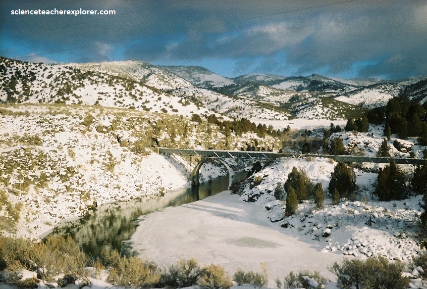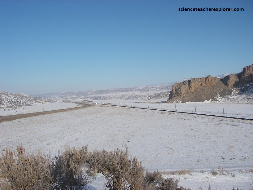 A few kilometers down the road towards Downey, Idaho is “Red Rock Pass. It is geologically significant as the spillway of ancient Lake Bonneville. The pass was cut through resistant Paleozoic Shale, limestone, and dolomite, and forms a narrow gap 3.2 km in length. At one time the pass was 91 meters higher, where the shoreline of Pleistocene Lake Bonneville stood. 14,500 years ago, an overflow caused a sudden erosion of unconsolidated material on the northern shoreline near Red Rock Pass. As the material gave way, Marsh Creek Valley, immediately downstream, was flooded from wall to wall, and the rapid discharge eroded the pass to its present level. The flood then flowed into the Snake River Plain, generally following the path of the present-day Snake River to its outlet in the Pacific. The Bonneville flood, as it is known, was a catastrophic event. The maximum discharge was about 420,000 m³/s.
