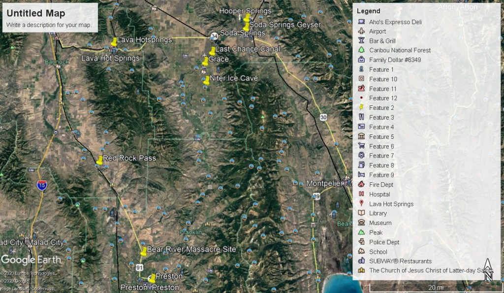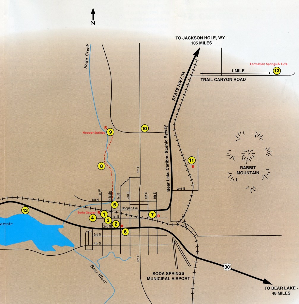 Just a few kilometers northeast of Grace is the Soda Springs community in Idaho. The city is named for the hundreds of natural springs of carbonated water that are located in and around the city. The springs were well known to Native Americans and were a famous landmark along the Oregon Trail in the middle 19th century.