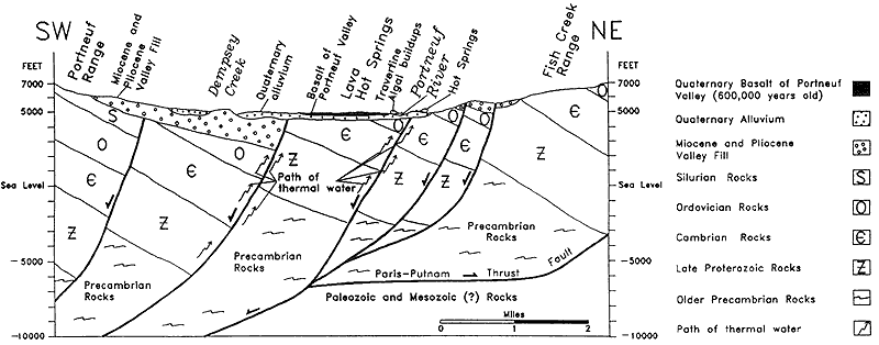 The source of heat at Lava Hot Springs can be attributed to the young volcanic activity and high heat flow from the upwelling mantle plume underneath Yellowstone. However, it is also responsible for the lava flows and cinder cones of both the eastern Snake River Plain and the Blackfoot Volcanic Field, which stretches from Grace to the Blackfoot Reservoir. The closest of those lava flows is just to the east of Lava Hot Springs, in the valley just on the other side of Fish Creek Pass and towards the Soda Springs.