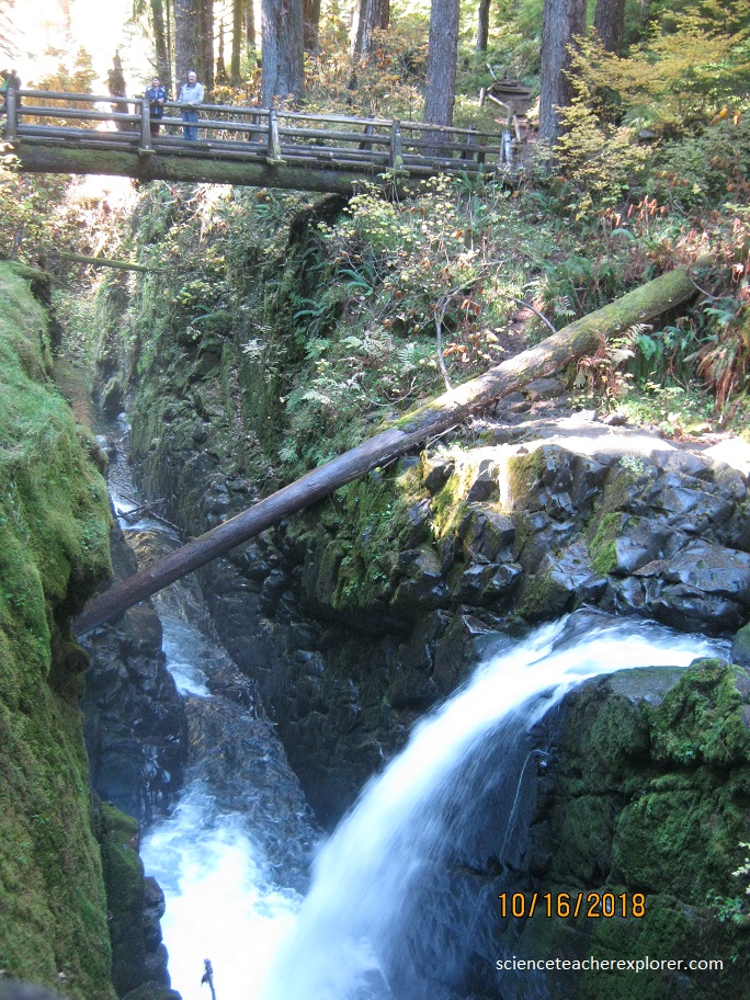 My Wife, Becky and Mike Stevens (a friend) are posing on the bridge behind the falls in the picture below. Mist rises from the river and the falls over the banks covered with heavy vegetation. The Trail to the falls, passes through a beautiful ancient forest that started at the Sol Duc Resort and hotsprings.