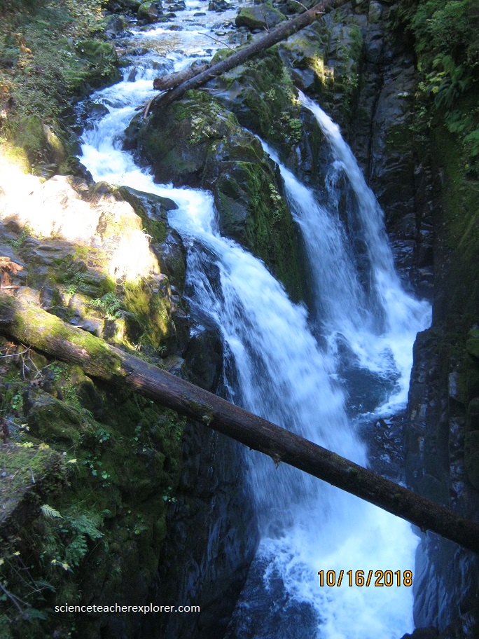 On October 16th, 2018, we visited the Sol Duc area. The name “Sol Duc” means “sparkling water”, a reference in all probability to the beautiful river which flows through the area. The Sol Duc (Soleduck) River, (pictured below) arises in the Olympic mountains, flows to the north and then to the west. The Sol Duc River is “cobbled”, having a very graveled bed. The river is known for the runs of spawning Coho-salmon and steelhead in the gravel of the river bed. The Sol Duc River flows through a canyon over a bank at the Sol Duc falls (pictured above).