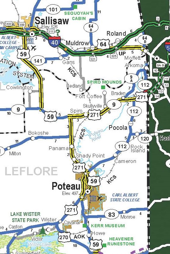 At the end of the day, from Spiro Mounds, I returned to U.S. 271 and drove west to Spiro where I continued driving west on U.S. 59. This took me to Sallisaw, when I turned onto I-40 West and drove to the U.S. 64 junction. There, I drove north to Gore for a visit to the 1829 Cherokee Courthouse, (picture above).