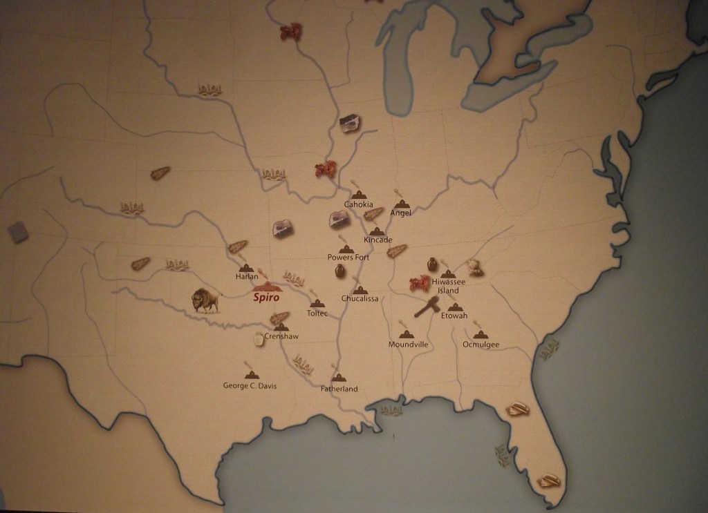 The Arkansas River was key to the rise of the society at Spiro Mounds. the river provided an agricultural foundation for the city and its people. The predictability of rainfall, flooding and harvest allowed the city to thrive and extend trade and influence throughout much of the area now known as the United States. Spiro trade networks extended in all directions, traveling along major rivers. Goods and communication reached the Gulf of California the Great Lakes, the Gul of Mexico, the tip of Florida and along the Atlantic coastline to Virginia.