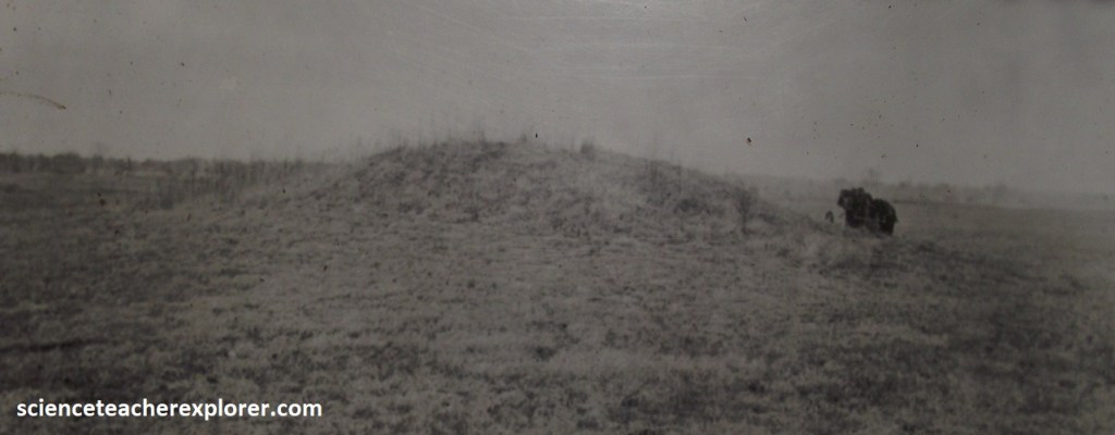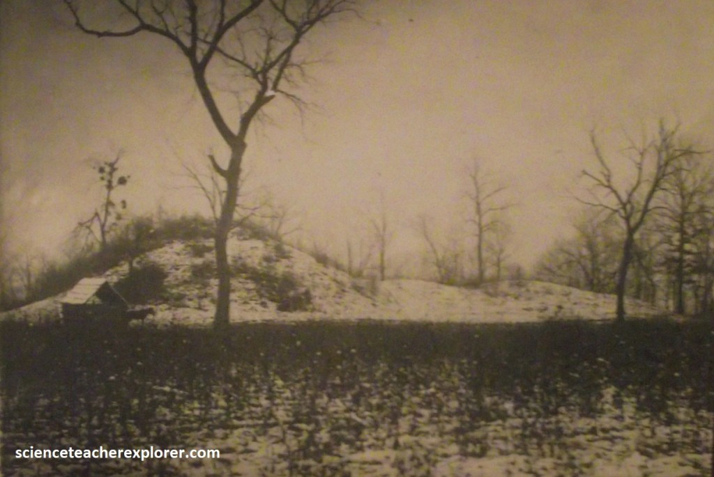 The first mounds to be studied were Ward Mounds 1 and 2. In 1916-17, Joseph Thoburn dug into the mounds and found that both were house mounds. House mounds were created as the base for a leader’s house, elevating it above all others, (imaged below).