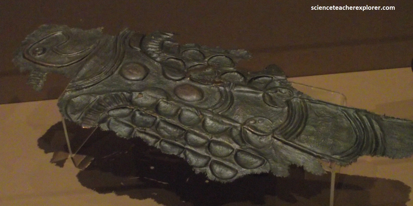 The Mississippian culture created thousands of mound sites in the eastern U.S., beginning in 850 A.D. Craig Mound, the only burial mound at Spiro, was used for the burials of over 1100 leaders. Pipes, conch shells, copper plates, and other items indicative of power and authority were interred with the owner to use in the afterlife. Because more of these items were found at Craig Mound than at any other site in the U.S., newspapers nicknamed this site the “King Tut of the West.”