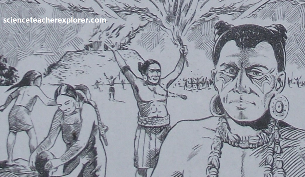 Only the immediate and extended family of a principle leader, like our governor or president, would live on a mound. Their homes were constructed of cedar and other woods, grass, cane and clay.