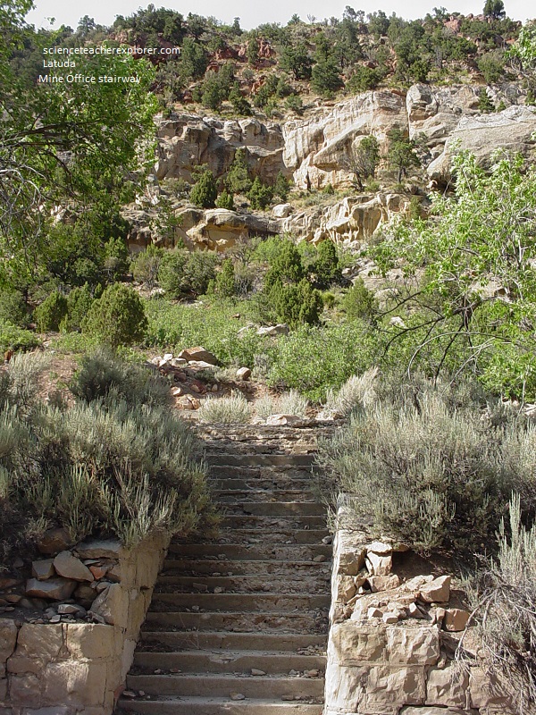 Latuda was home to the infamous mining office that has been the basis for legends regarding the White Lady Ghost. Pictured below, one can still see a set of stone stair cases leading to where the building once stood.