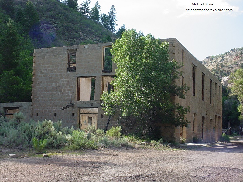As one drives towards the end of Canyon Road, the ability to continue up Spring Canyon is blocked by private owners. However, at the end of the road is a large building called the “Mutual Store”.