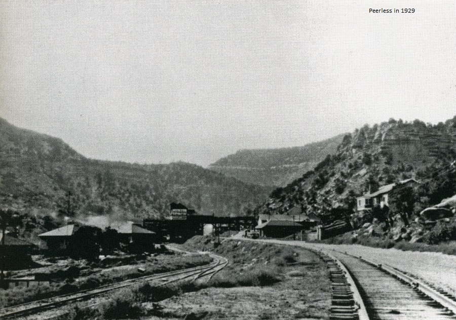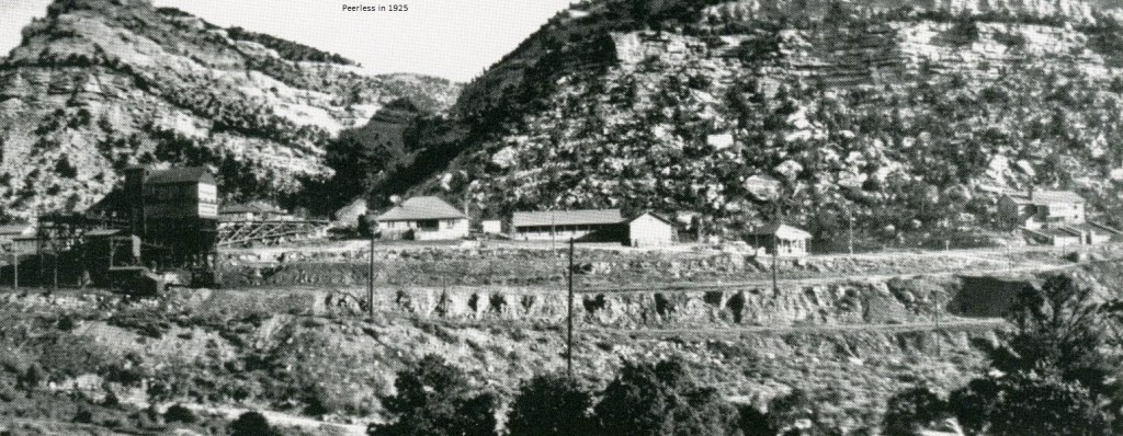 Pictured above, the photo shows the Peerless tipple with the tramway extending up the mountainside, the superintendent’s home, and homes of the mine-workers. The Peerless school is on the far right.