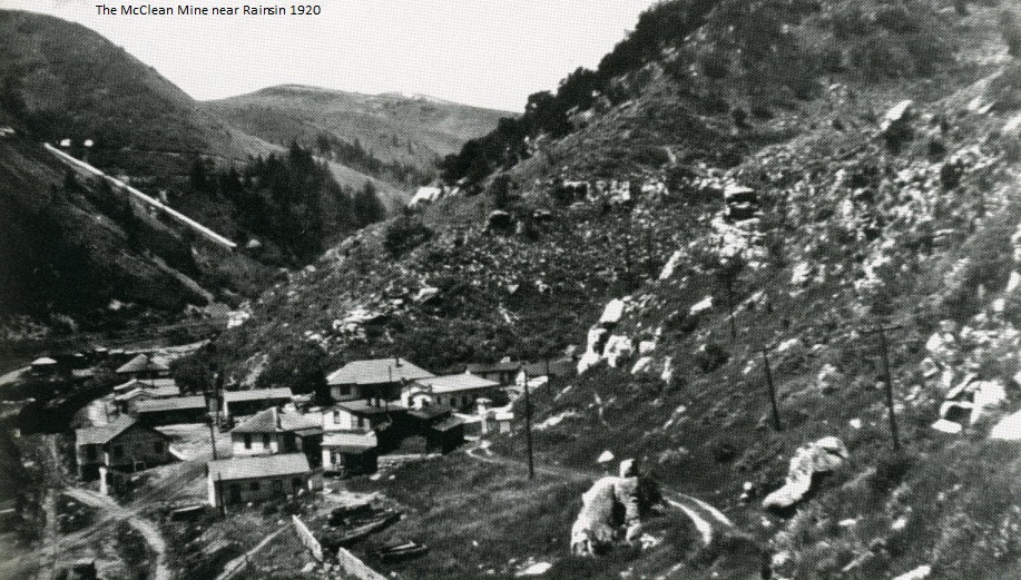 At it’s peak, “Rains” reached a population of over 400 people with dances, free movies and talent shows. Pictured above, the picture shows the nearby Maclean Mine. The Maclean Mine was located high up on the mountainside across from “Rains”. Although the Maclean was owned by the Standard Coal Company, the coal was processed at the Rains tipple. The homes at Rains were small but comfortable, and soon the town had blossomed to include its own store. In 1921, a 210-man crew produced 158,133 tons of coal and the population of the town of Rains approached 500. However, when crews were temporarily increased, many of the additional single miners often lived in tents. The Rains Mine production peaked in the mid-1920s and gradually declined thereafter.