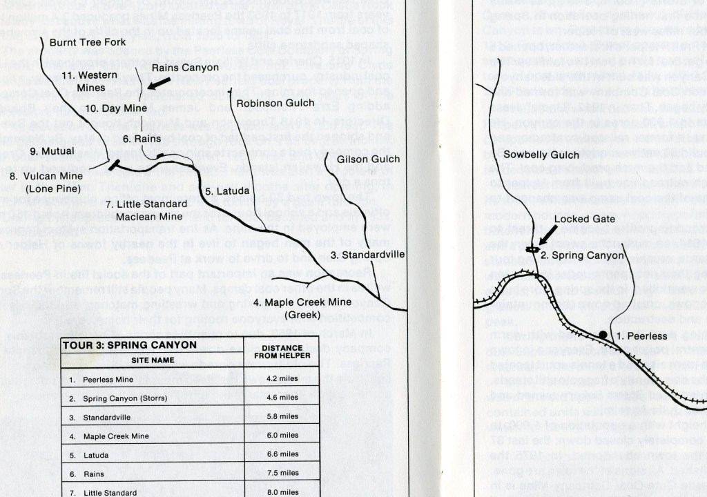 Beginning with Peerless and ending with Mutual, the Spring Canyon area towns and the nearby mines produced approximately 53 million tons of coal over the coarse of their lifespan. Mining began in the canyon by 1900, with most of the mines closing by the late 1950s. This left a canyon full of ghost-town locations.
