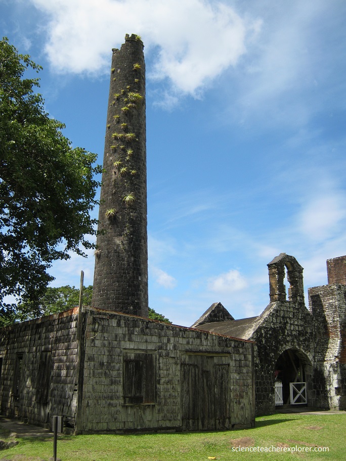 As we drove back towards Basseterre, on the north-east shore of St. Kitts, the topography and vegetation of the Southern Peninsula was dramatically different. It consisted of numerous low, round hills that reach a maximum height of 319 m, but were generally much lower and are separated by flat, low-lying areas and salt ponds. Vegetation was sparse with dryland grasses, low shrubs, cacti and yucca. There we came across the old ruins of a rum factory (pictured above). It was set up like a Museum.