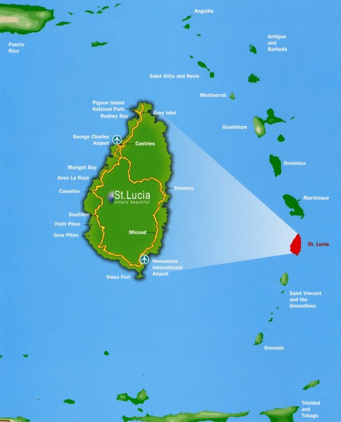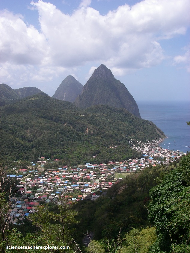Pictured above, the Pitons are located near the town of Soufriere in southwest St. Lucia.