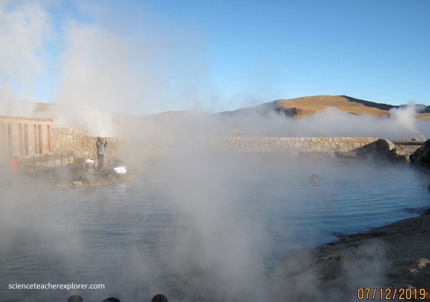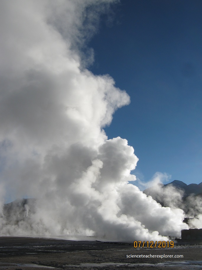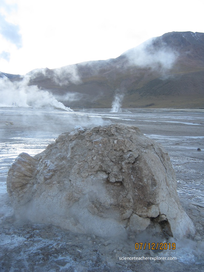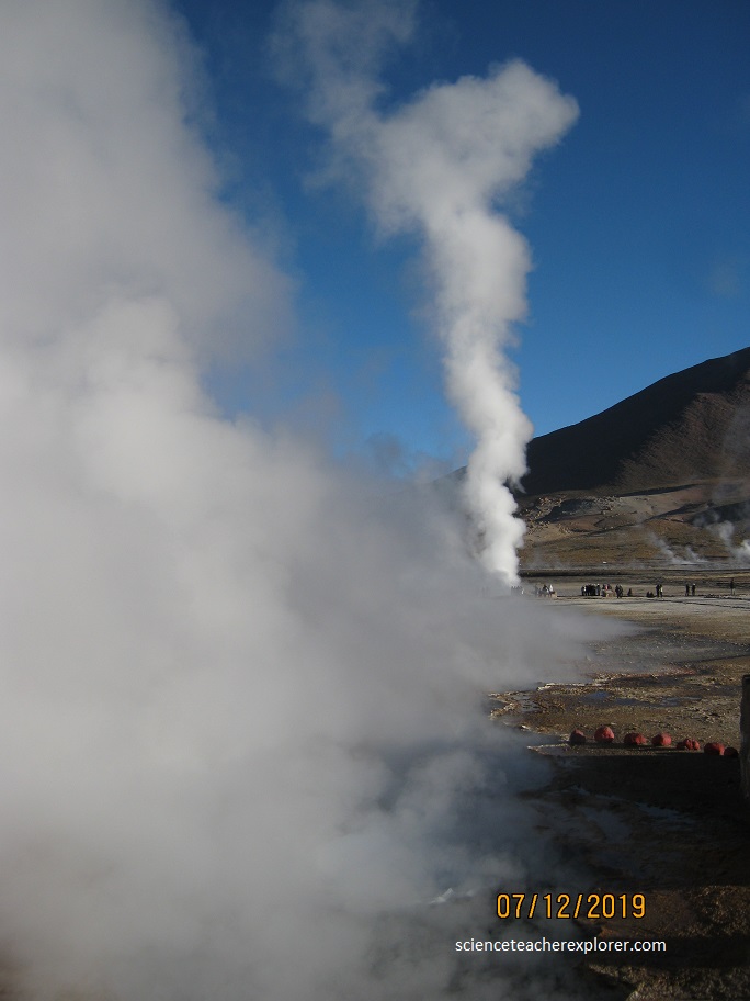 After exploring and trekking the San Pedro de Atacama area, I decided to join a tour group on July 12th, 2019; that took me into the Tatio Geysers. Located 89 km from the city of San Pedro de Atacama and surrounded by an astonishing scenery of arid beauty, Tatio Geysers are a volcanic geothermal field, where water and steam columns spring up violently from deep under the ground. Set at an elevation of 4,200 m (16,800 ft), these are the highest geysers in the world.