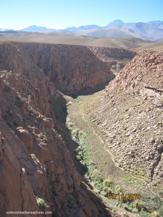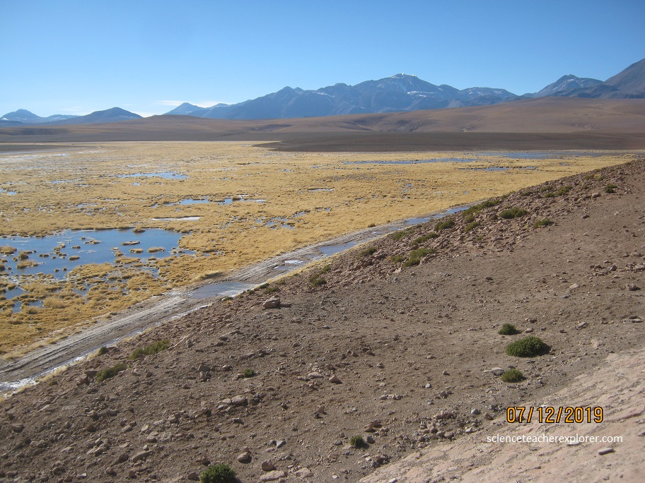 (Pictured above), drainage in the area is generally from east to west down the Western Cordillera, often in form of steeply incised valleys. The Rio Salado drains most of the hot spring water and has its headwaters in the field where it is joined by the Rio Tucle, (pictured below).