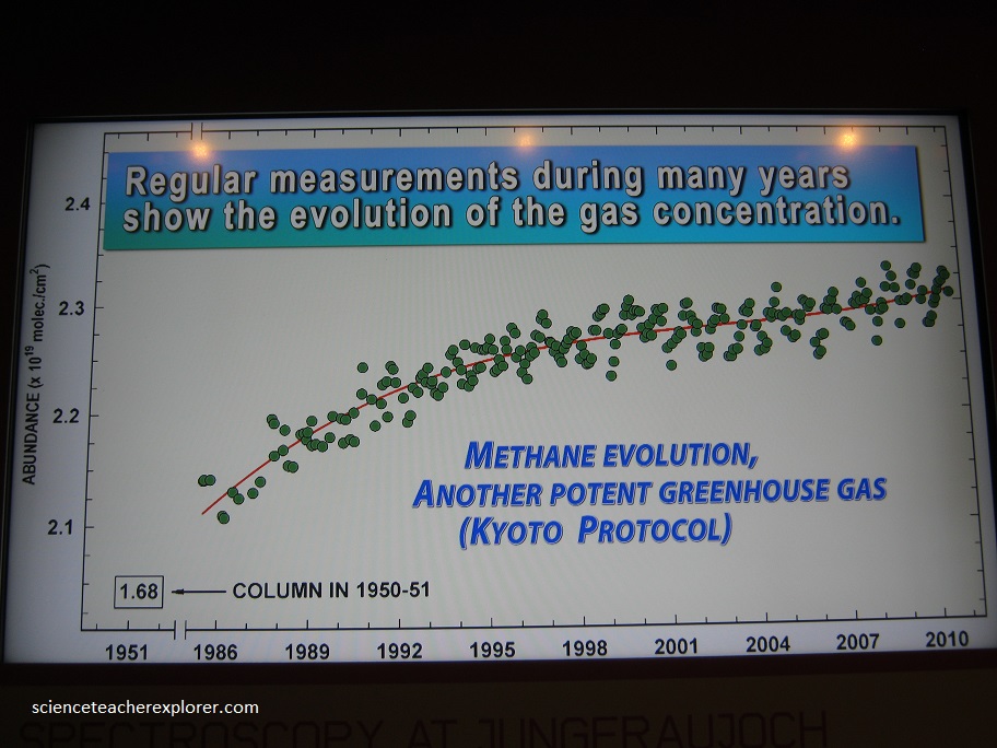 The air on Jungfraujoch–far above and far away from local air polluters- contains greenhouse gases and other pollutants in concentration that reflect the current general state of the atmosphere over Central Europe.